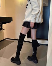 サドルブーツ エレガント 折り返し 厚底 ウエスタンブーツ 秋冬 スエード ロングブーツ