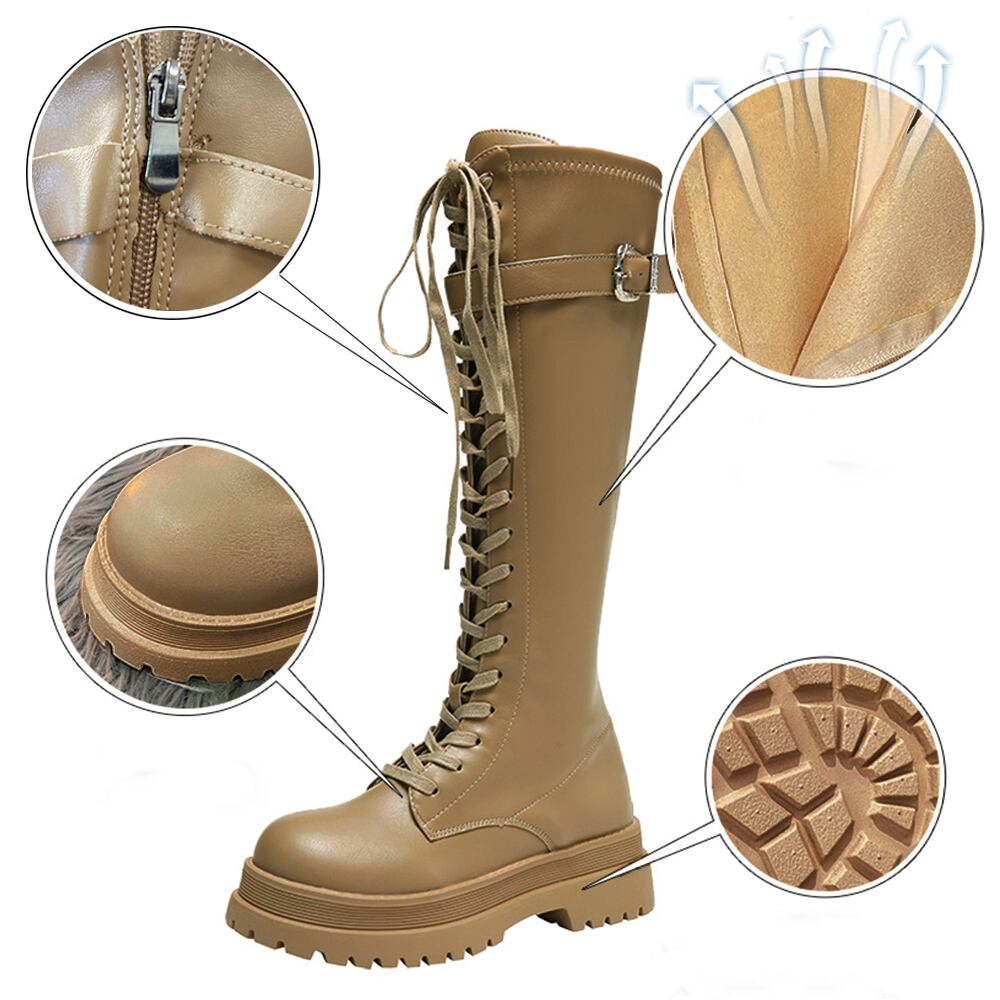 秋冬編み上げブーツ/おしゃれ 厚底冬靴/人気 膝下丈ブーツ