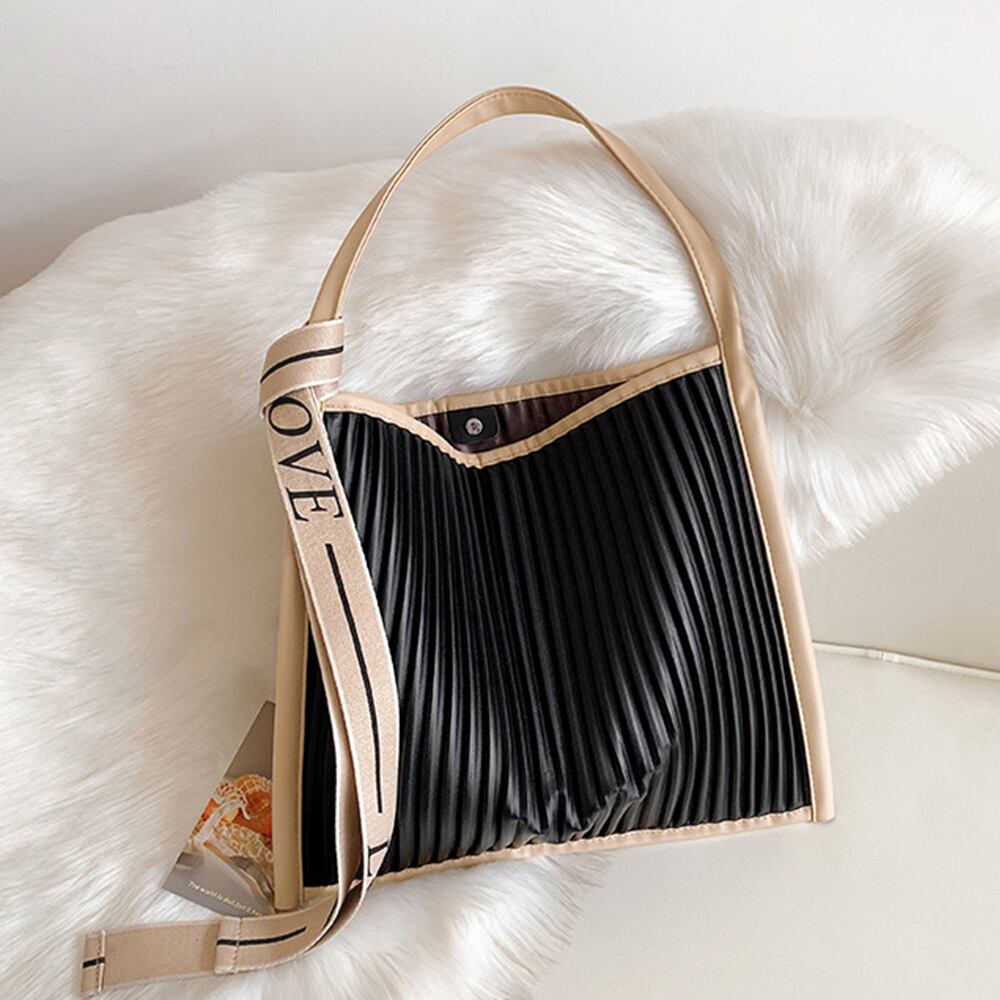 おしゃれで使いやすいプリーツトートバッグは、エコレザー素材を使用したトレンド感満載のアイテムです。シンプルなデザインながら、エレガントな雰囲気を演出し、デイリーコーディネートにぴったりです!